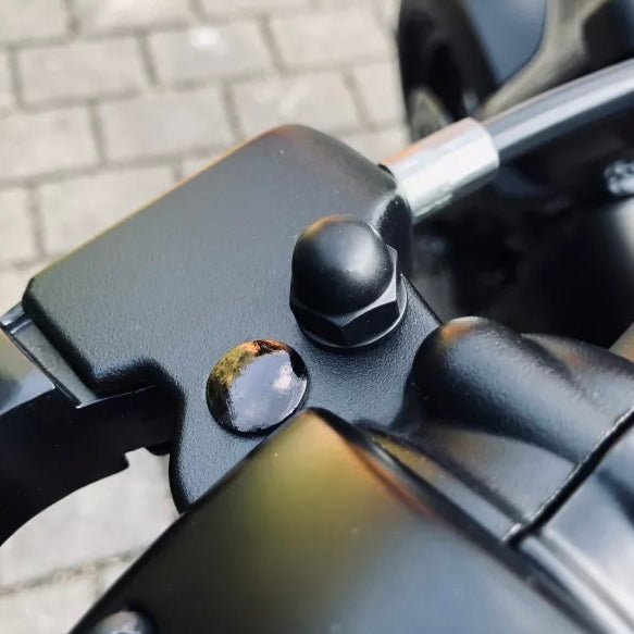 The mirror nut kit is ideal for keeping the handlebars black. The cap nuts and washers are made of stainless steel.