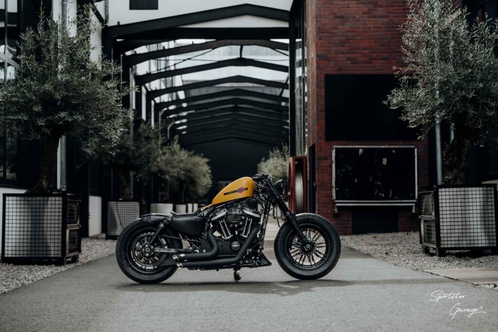 Zum Verkauf steht hiermit eine neuwertige Harley-Davidson 48 im „BUMBLEE“ Design. Ausgestattet mit einem FULL KIT der Sportster Garage®